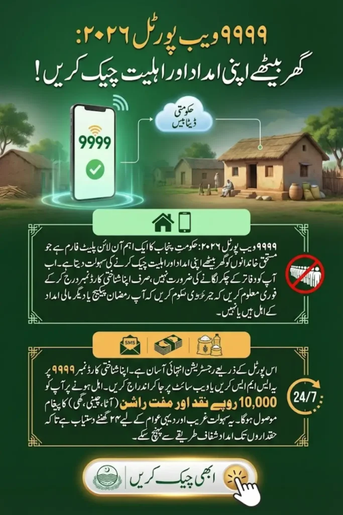 The 9999 web portal 2026 is a vital tool for connecting eligible families with government welfare programs. The PM Ramzan Package provides essential financial and food support to low-income families, ensuring a dignified and peaceful Ramadan. By registering through the portal or SMS, citizens can quickly check eligibility and access aid without unnecessary delays or paperwork. This initiative reflects the Punjab Government’s commitment to supporting underprivileged families efficiently and transparently.