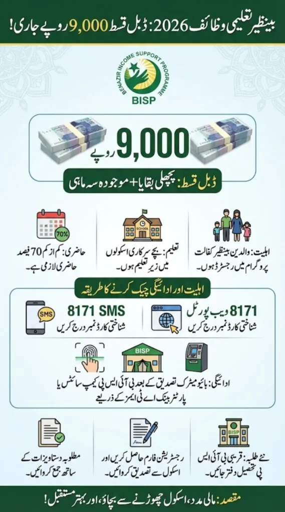 The Benazir Taleemi Wazaif Double Stipend Rs. 9,000 in 2026 is a timely intervention during challenging economic conditions. It reinforces the government’s commitment to protecting children’s education and preventing dropouts.