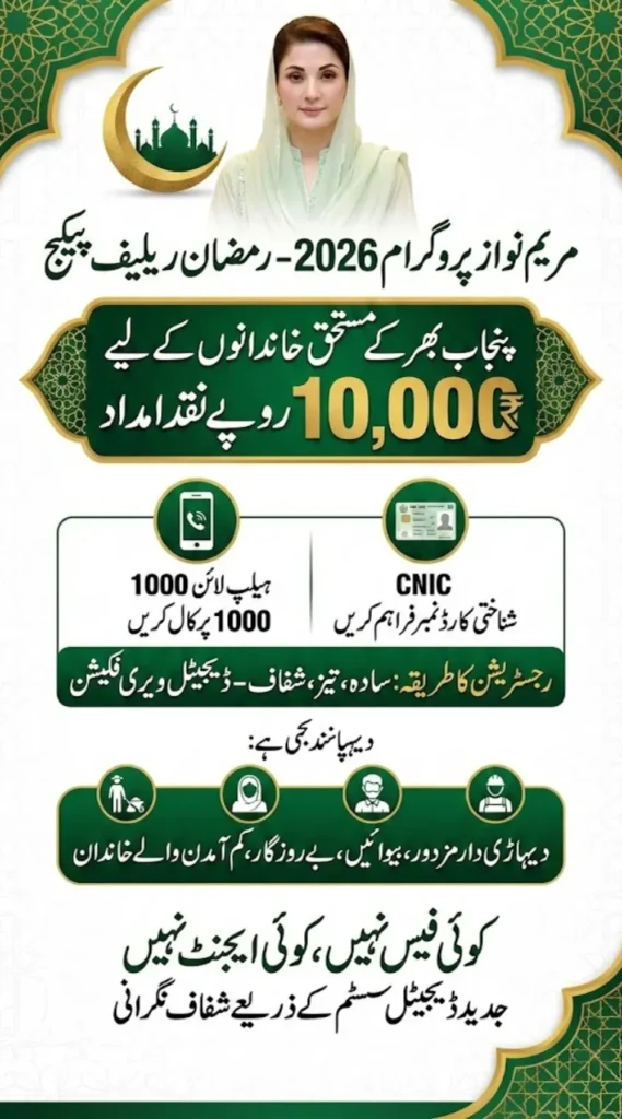 It is a Ramzan relief initiative launched under Maryam Nawaz Sharif to provide Rs. 10,000 one-time cash assistance to deserving families across Punjab.