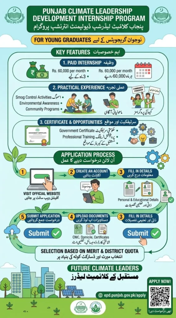 The Punjab Climate Leadership Development Internship Program is a golden opportunity for graduates who want to gain professional experience while contributing to environmental protection.